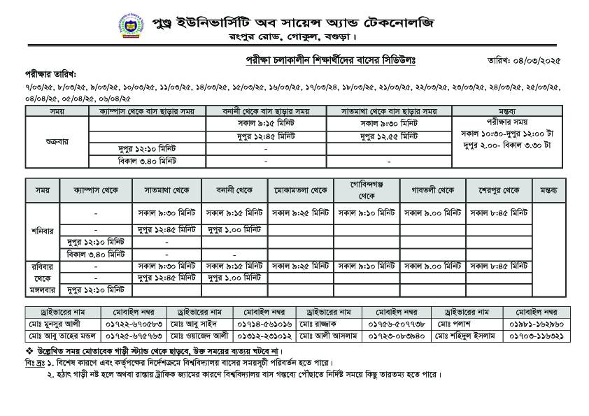 পরীক্ষা চলাকালীন শিক্ষার্থীদের বাসের সিডিউল
