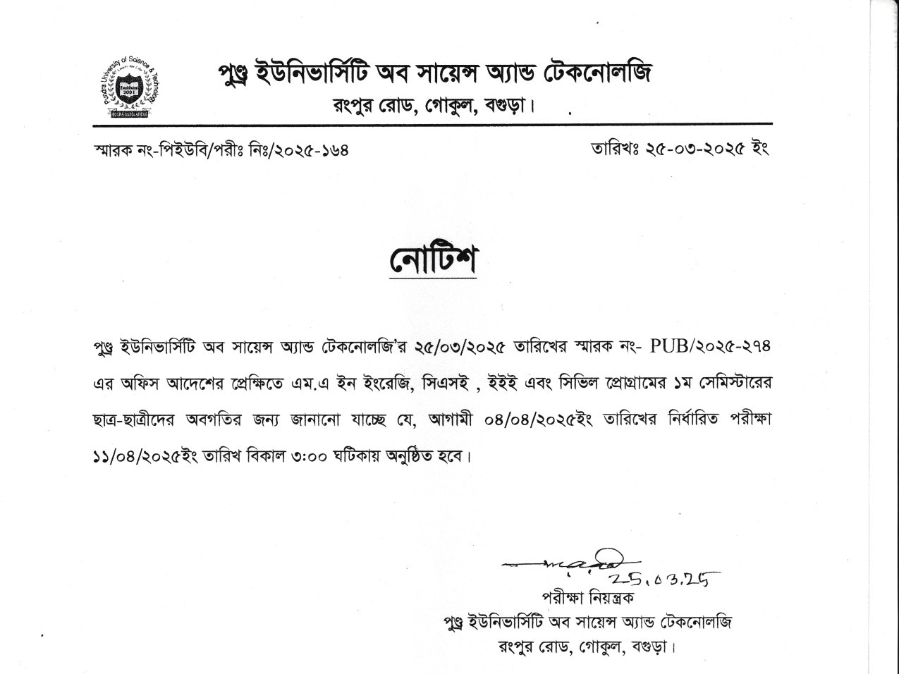 পুণ্ড্র ইউনিভার্সিটি অব সায়েন্স অ্যান্ড টেকনোলজি’র ০৩- ...