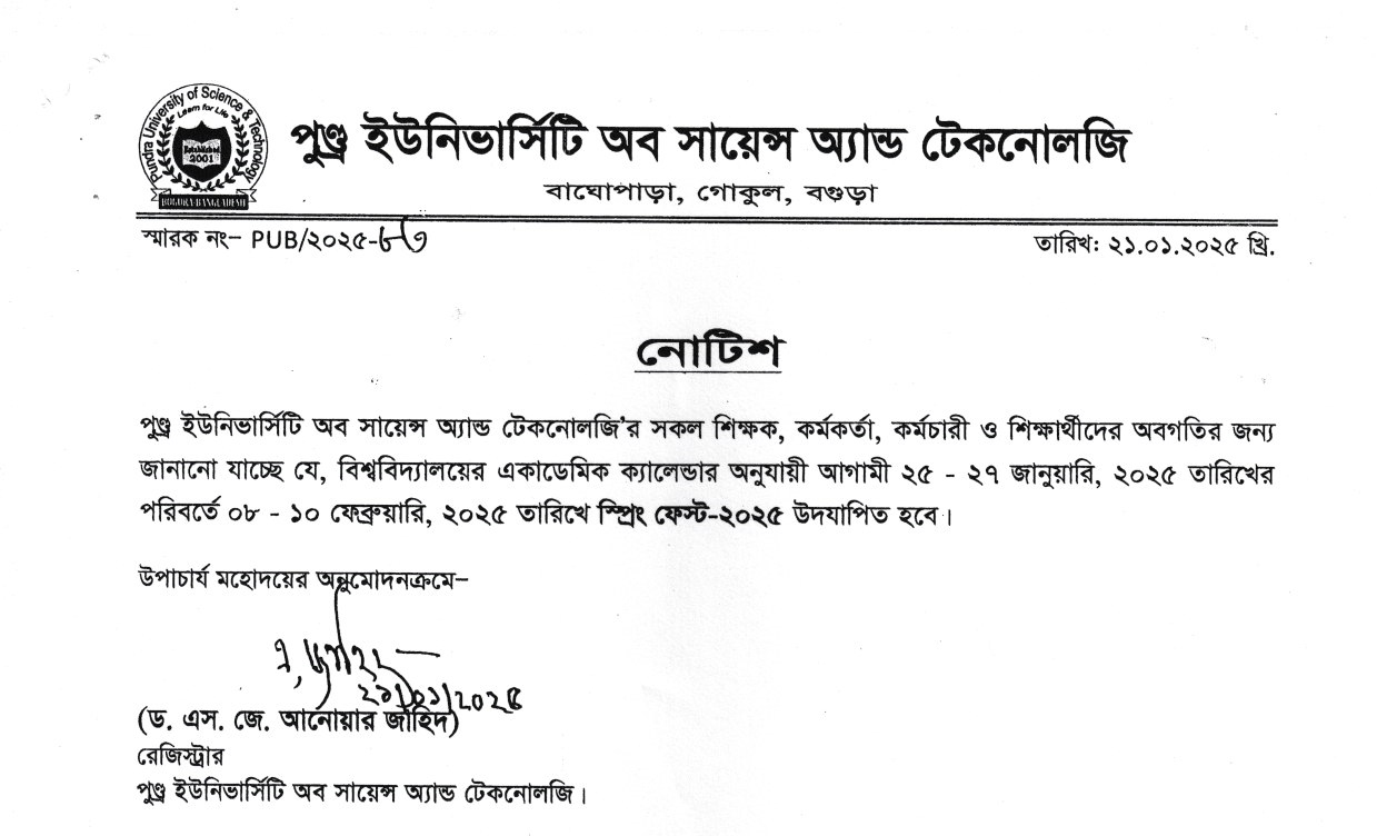 স্প্রিং ফেস্টের তারিখ পরিবর্তন প্রসঙ্গে