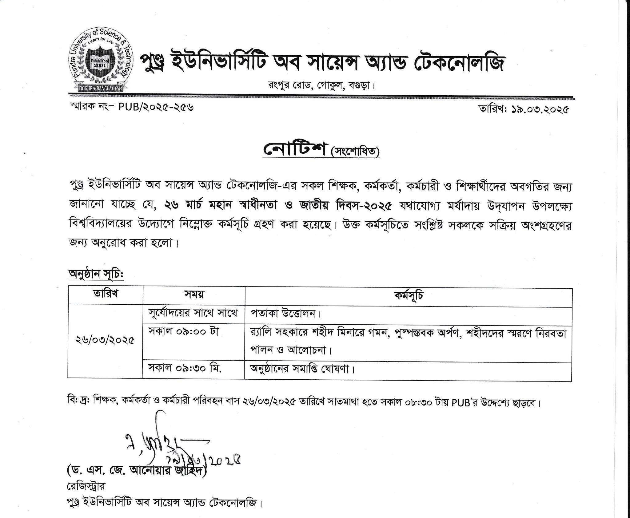 পুণ্ড্র ইউনিভার্সিটি অব সায়েন্স অ্যান্ড টেকনোলজি’র ০৩- ...